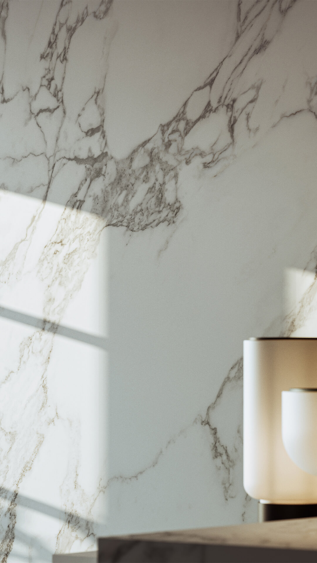 Delicate grey veins are the distinguishing feature of a material with a balanced yet never predictable aesthetic. Slight clouds lend graphic depth and dynamism to the compact white background.