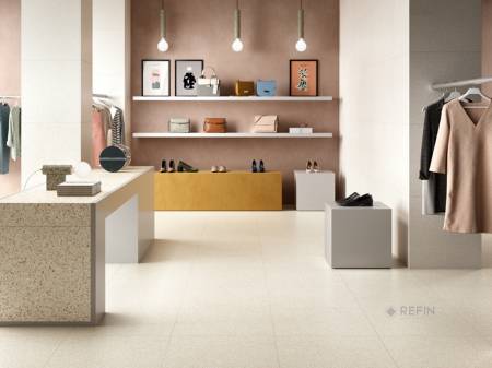 The sophistication and charm of traditional Venetian Terrazzo are brought back to life with a contemporary twist in the Flake collection. Venetian Terrazzo, a material resulting from the amalgamation of chips of marble, stones, cement components and natural oxides, is widespread in prestigious residences across the globe, from Venice during the Italian Renaissance to elegant Liberty-style buildings.